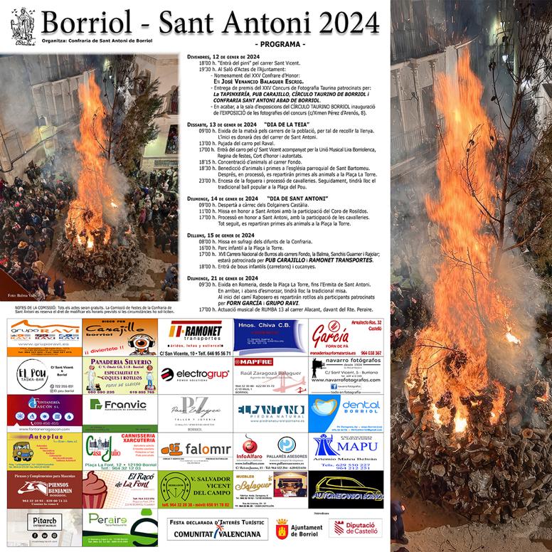 La TAPINXERIA, PUB CARAJILLO, CÍRCULO TAURINO DE BORRIOL i CONFRARIA DE SANT ANTONI ABAT DE BORRIOL.