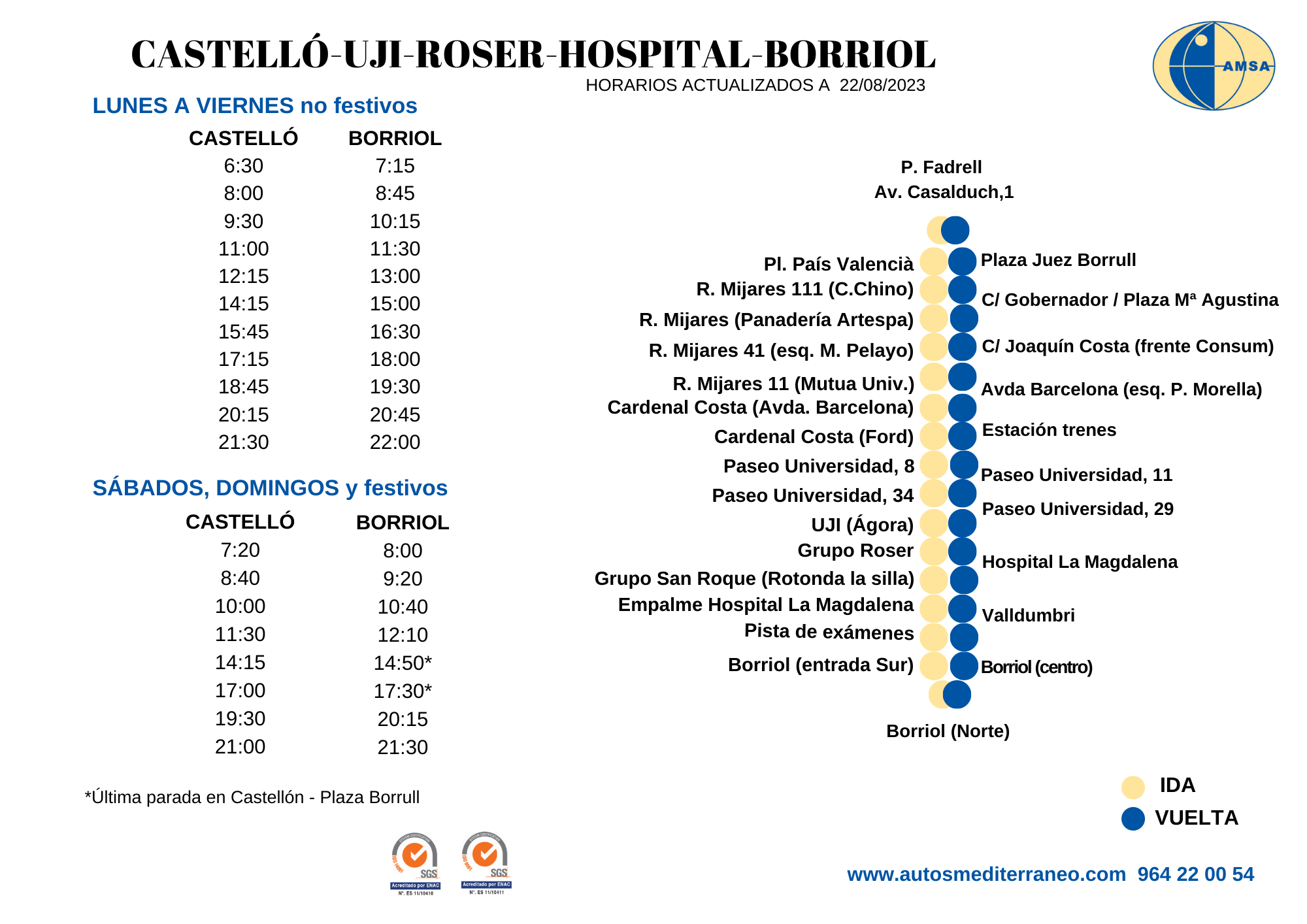 A més a més, la companyia HICID, en el seu trajecte de Vilafranca a Castelló, també posa a l’abasta de la ciutadania de Borriol aquesta línia, que connecta Borriol amb pobles de l’interior com la Pobla Tornesa, Vilafamés, la Vall d’Alba, Albocàsser i Vilafranca, diàriament de dilluns a dissabtes laborables, a les 17:46 hores. Així mateix, aquesta línia connecta amb Castelló amb aquesta freqüència i el pas per Borriol es preveu a les 8:15 hores.